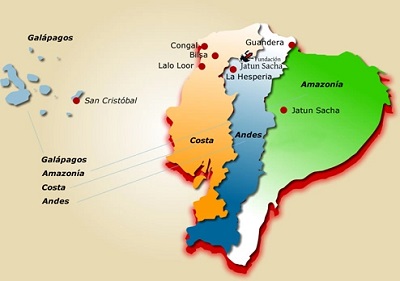 Entre las 24 provincias del Ecuador se encuentra una gran mega diversidad natural, pues la privilegiada ubicación de este país hace que sea único, con centenares ecosistemas diversos. Las condiciones ambientales del Ecuador son muy variables en el espacio, es por eso que se han desarrollado regiones naturales con propiedades muy diferentes. Cualquier persona, que haya recorrido los Andes desde la Amazonía hasta el litoral habrá sido consciente de la gran diversidad natural del país.